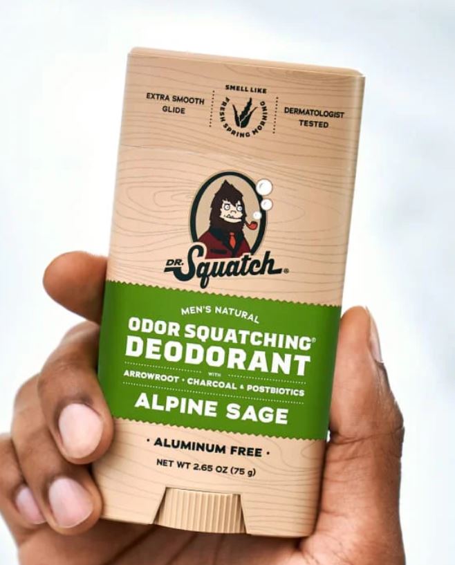 Dr. Squatch natural men’s deodorant keeps you fresh so that you can go about your day with confidence, no matter where it takes you. Our Odor-SquatchingTM system fights potential sources of B.O from every angle with powerful natural deodorizers such as Charcoal Powder to block odor, Postbiotics for microbiome support, and Arrowroot Powder to absorb moisture. With a smooth glide application and skin-nourishing moisturizers like Jojoba and Shea Butter, our deodorant is gentle on your skin and leaves you—and your pits—ready for any adventure.