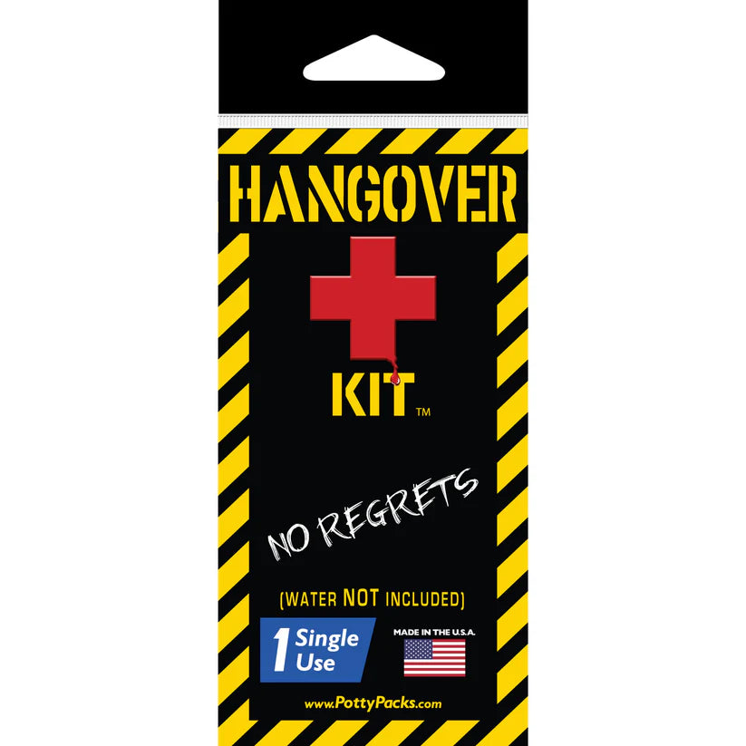 NO REGRETS! This hangover kit contains everything but the water. Included are Aspirin tablets and Antacid medication for pain relief. Re-hydrate by mixing the electrolyte powder with water. Finally, refresh by using the mint and lip balm.