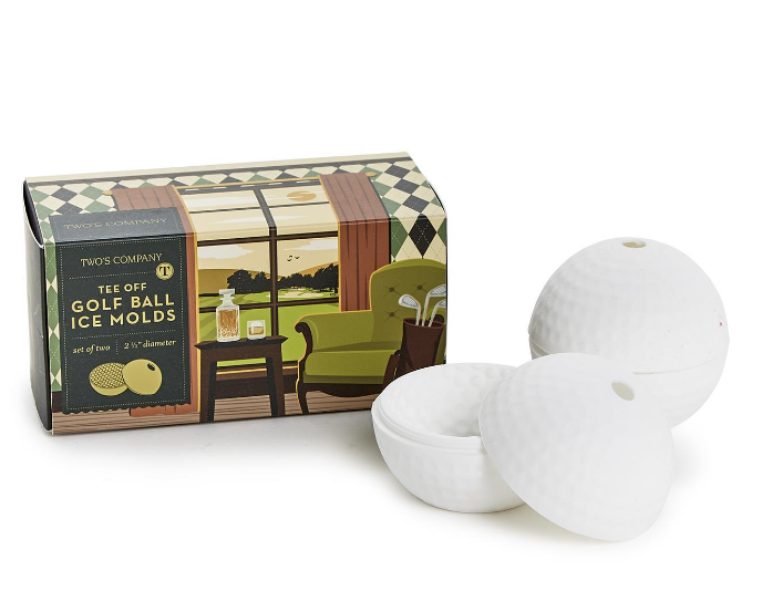 Introducing the Tee Off Set of 2 Golf Ball Ice Mold, the perfect accessory to add a touch of elegance and fun to your drinks. Crafted from premium silicone and packaged in a sleek gift box, these molds effortlessly create 2.5-inch diameter golf ball-shaped ice spheres, transforming any beverage into a hole-in-one experience. Whether you're hosting a golf-themed party or simply enjoying a refreshing drink after a round on the course, these molds are sure to impress.