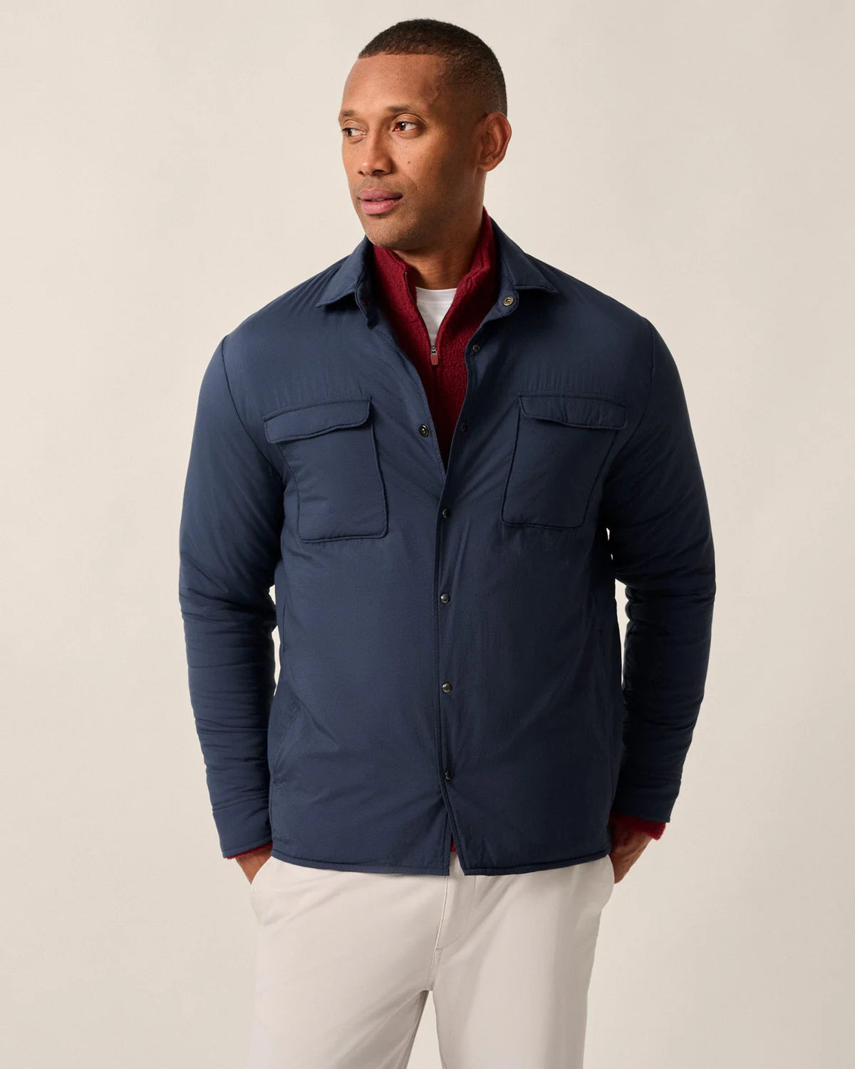 Using the same Featherweight stretch material we use in our iconic performance polos, we created the ultimate performance shacket. Designed in the classic workshirt style with one cool exception—the magnetic snap placket—that makes it a cinch to pull on and off.